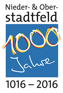 „1016 – 2016“ und „Oberstadtfeld“ steht dort auf einer großen Sandsteintafel eingemeißelt, dazu das Gemeindewappen und ein kleiner Ijel darf natürlich auch nicht fehlen. Das Ganze ist eingefügt in eine Bruchsteinmauer aus Eifeler Grauwacke.