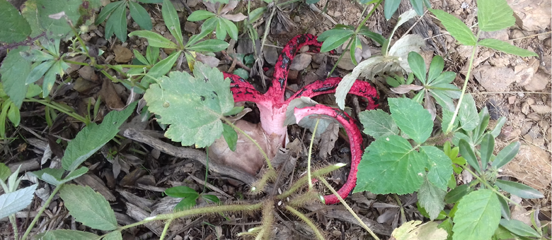 Diesen außergewöhnlichen Pilz hat Richard Willems bei Freistellungsarbeiten in einer Fichtenkultur im August 2017 in Oberstadtfeld entdeckt. Es handelt sich dabei um einen Tintenfischpilz, der eigentlich in Australien beheimatet ist und Anfang des 20. Jahrhunderts nach Europa eingeschleppt wurde. Erstmals nachgewiesen wurde er in Deutschland im Jahre 1934. Er gehört zur Gattung der Morscheln, ist nicht giftig, aber wegen seines auffälligen Verwesungsgeruchs ungenießbar.