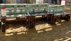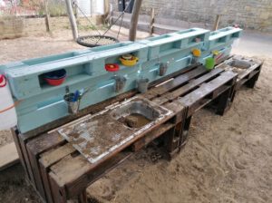 Sascha Lehmann, seine Lebensgefährtin Anika Horten, Familie Blum und viele weitere helfende Hände haben organisiert, gesägt, geschliffen, geschraubt, lackiert und aufgebaut. Das Ergebnis kann sich sehen lassen, die neue Spielmöglichkeit wird sehr gerne genutzt und in der Kita gibt es seither viele neue „Matschos“.