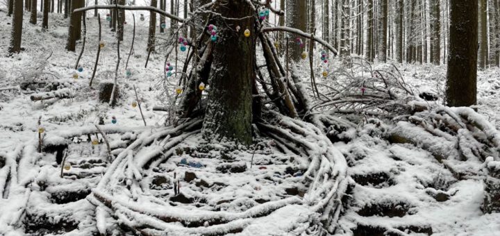Wer sich einmal zu Fuß auf den Weg um Oberstadtfeld macht, findet auf einem der Wanderwege, oberhalb der B257 (rechts von Daun kommend) diese schöne Walddekoration, die fleißige Wichtel aufgestellt und erbaut haben. Mit...