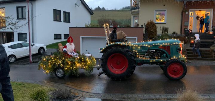 Am Sonntag, den 20. Dezember fuhr der Nikolaus zusammen mit Knecht Ruprecht mit einem geschmückten Traktor durch das Dorf und verteilten kleine Präsente an die Kinder. Viele standen an der Straße oder am Fenster....